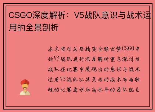 CSGO深度解析:V5战队意识与战术运用的全景剖析
