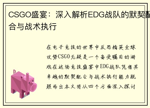 CSGO盛宴:深入解析EDG战队的默契配合与战术执行